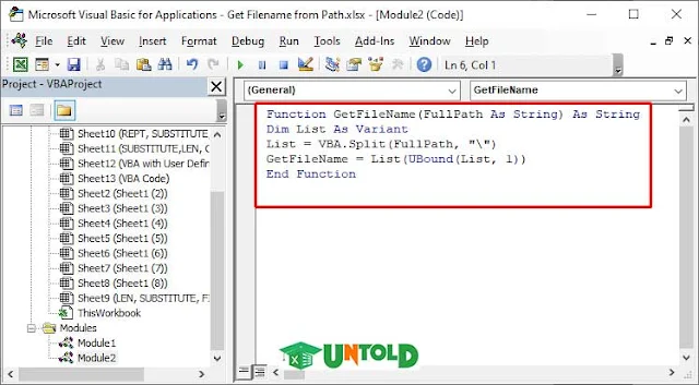 If you feel the user-defined function is a little bit difficult to get the filename then you can use the below method to get the filename by directly applying VBA code in Excel.